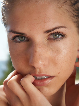 Темноволосая метиска с азиатскими корнями позирует в синем платьице возле бассейна. Красавица игриво оголяет молодые прелести, спрятанные под платьем, а потом полностью раздевается, показывая вблизи мягкую попу и ухоженную письку без трусиков.